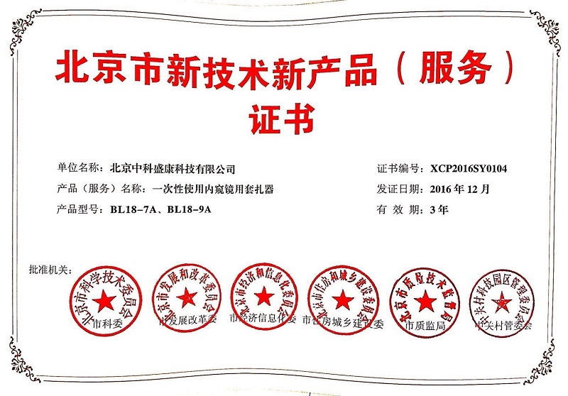 • 北京市新技術新產品證書